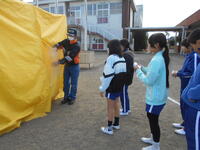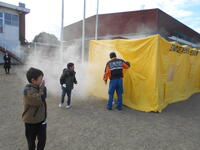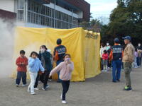 避難完了後、石橋消防署壬生消防署の方々にご協力いただき、煙道体験を実施しました。