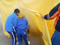 実際にテント内に充満する煙の中を歩く体験を通じて、火災の恐ろしさと避難の重要性を学びました。