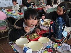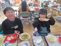 給食週間2日目は、壬生町の食材をたっぷり使った給食をいただきました。献立は、はちみつパン、プレーンオムレツ、かんぴょう入りポトフ、手作りいちごのブラマンジェでした。壬生町は、いちごの生産が盛んです。JAしもつけさんからいただいた“とちあいか”でいちごソースを作り、栃木県産の牛乳で作ったブラマンジェの上にかけて完成させたそうです。寒い時期にしか 作ることのできない1品。8年ぶりに壬生小学校の給食に帰ってきました。6年生をはじめ多くの児童が笑顔いっぱいおいしそうに食べていました。