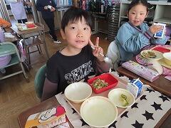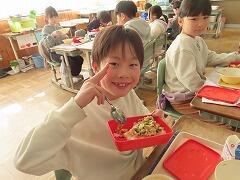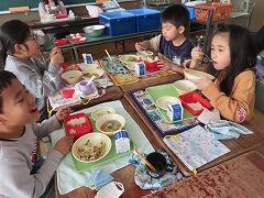 給食週間4日目は、給食のはじまりを知ろう “自分でおにぎり”を作っていただきました。献立は、セルフおにぎり、さわらの塩焼き、たくあん、すいとん汁、牛乳でした。学校給食は、明治22年、山形県のお寺の中に建てられた小学校で、お昼ごはんを持ってこられない子供たちに、おにぎり、焼き魚、つけものを出してくれたのがはじまりと言われています。今回は3・4・5年生の給食の様子を紹介します。