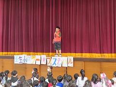 6日(木)、ロングの昼休みに集会委員会主催の「壬生小スターフェスティバル」が行われました。今年度「壬生小ステーション」から名称を変更してバージョンアップされた企画で、全校生の前での発表を通して、共に賞賛し合い、認め合うことができる雰囲気をつくることと、仲間との連帯感や所属意識、自己有用感を高め、達成感を感じられるようにすることをねらいとしています。第1日目(1・3・5年生の発表)の様子を紹介します。第2日目(2・4・6年生の発表)は13日(木)を予定しています。
