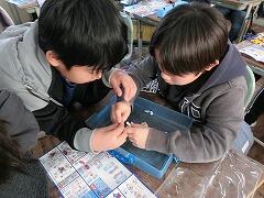 3年生の教室をのぞいてみると、子供たちが熱心に豆電球の明かりのつけ方について調べる学習を行っていました。みんな笑顔いっぱい様々な方法を試していました。どんなつなぎ方をすると明かりがつくのかな…、調べたり考えたりすることはとても楽しいですね。