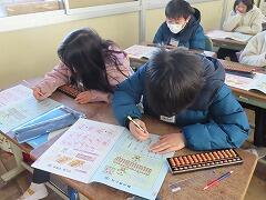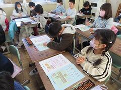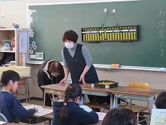 先週は2日間にわたって3年生対象の珠算教室が行われました。今年度もゲストティーチャーとして学習支援ボランティアの方にお願いしました。そろばんの各部の名称やその意味、計算の用意の仕方、操作に使用する指、そろばん用語等について分かりやすく教えていただきました。子供たちにとって、そろばんについて学ぶ貴重な機会となったようです。