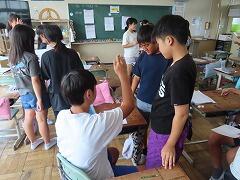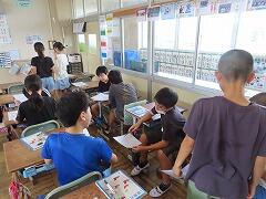 本校の学校課題のテーマは「対話を通して学びを深める授業づくり~対話を生み出す発問の工夫を通して~」です。各学年でこのテーマを意識して授業が展開されています。5年生の社会科でも子供たちが対話を通して学びを深められるようたくさんの仕掛けが用意されていました。子供たちはペア学習やグループ学習等で自分の考えに自信をもったり、考えを広げている様子が確認できています。