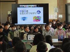 壬生町と姉妹都市として交流していたこととかんぴょうの産地である縁から、3年前より滋賀県甲賀市立綾野小学校(旧水口町)と交流学習を行っています。13日(金)、本校の4年生が綾野小の4年生とオンラインで交流授業を行いました。まずは、綾野小の子供たちがグループごとに、かんぴょうや水口城址、地域のお祭りなどについて発表してくれました。壬生小の子供たちも、栃木県や壬生町の特徴、そして何と言っても、体験し、学習した夕顔やかんぴょうのことを分担して発表しました。プレゼンテーションソフトで分かりやすくまとめ、オンラインでも相手に伝わりやすくすることを考え、上手に発表できていました。壬生町、そして栃木県代表としてすばらしい活動をしてくれました。