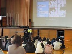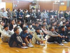先週、6年生が本校でマイチャレンジ活動を行っていた11名の生徒との交流会を行いました。中学生からは、勉強のことや楽しい行事のことなど中学校生活について詳しく教えてもらいました。また、子供たちからのたくさんの質問にもていねいに答えてもらいました。6年生の聴く態度も立派でしたが、11名の中学生の受け答えする姿も大変素晴らしかったです。6年生にとって中学校への期待が膨らむ時間になったのではないかと思います。