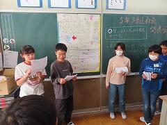 5年生の社会科で学びの成果発表会を行いました。子供たちは職員室などに向かい「社会科で発表会を行うので見に来てください。」などと事前に先生方に呼び掛けていました。当日は、たくさんの先生方が子供たちの堂々とした発表の様子を参観することができました。主体的に学んでいる子供たち、あっぱれです。