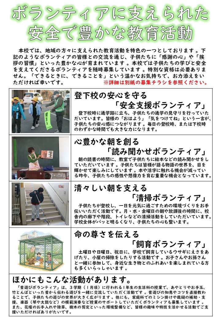 6年生代表による感謝の言葉のほか 、お礼の手紙やプレゼントを贈呈しました 。会の終了後には、ボランティアの皆様に児童と一緒に下校していただきました。地域の皆様、いつも温かい見守りを本当にありがとうございます。