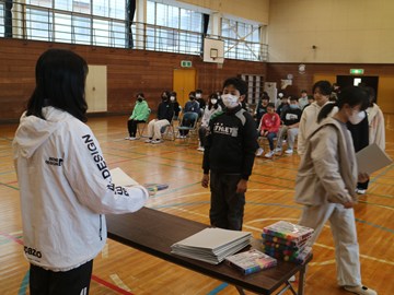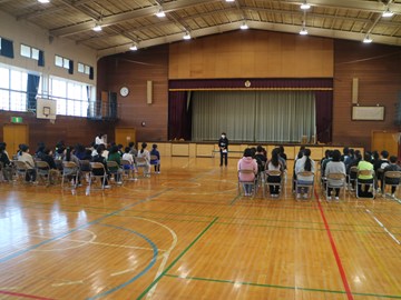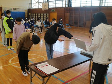 12月17日の5校時、体育館にて「みぶっ子心のきらめき表彰」の表彰式に向けた練習を行いました。