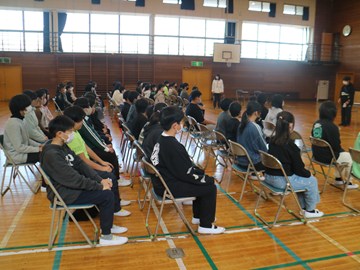 4年生は、2クラスに分かれて「講話」と「実技」を体験しました。