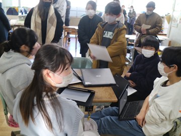 事後指導では、1・2年生は振り返りカード、3〜6年生はタブレット等で自らの行動を評価し、防災意識をさらに高めていきます。