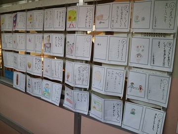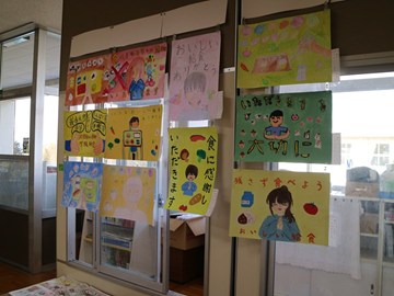 集会では、冬休みの課題等で取り組んだポスターや標語、かるた、作文などの表彰を行いました 。 どの作品も、「食べること」について真剣に考え、自分の言葉や絵で表現された素晴らしいものばかりでした 。