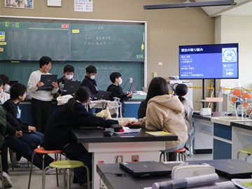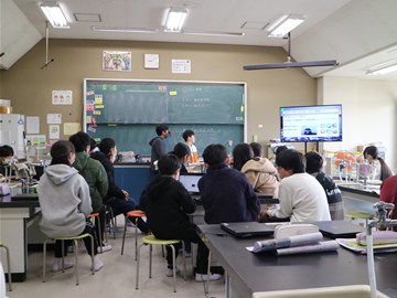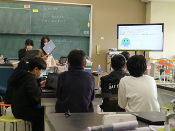 理科室を覗くと、6年生がスライドを使って1年間の理科の学習のまとめを発表していました。「どうしたら地球温暖化を防げるか」「私たちはどう行動していけばいいのか」を6年生なりに考えてスライドを作り発表していました。中には、Vtuber風に動画を作って発表しているグループもありました。さすが、6年生という感じでした。