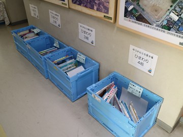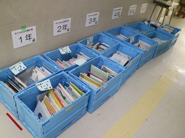 各クラスに置かれている学級文庫用の「青い箱」。今日はその入れ替え日です。 新しい本が教室に届くのが楽しみですね。