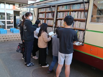バスの周りや校庭に並べられたコンテナから、子供たちは真剣な表情で本を選んでいました。 「次はこれを読もう!」「面白い本、見つけたよ!」といった声が聞こえ、本の世界に引き込まれている様子が印象的でした。