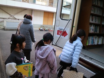 今日は、子供たちが心待ちにしている「ゆうがお壬生」の日でした。 お昼休みの校庭には、たくさんの本が積まれたバスと、新しい本を心待ちにする児童の笑顔があふれました。