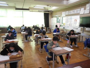 教室を回ると、一問一問を慎重に読み、最後まで粘り強く考え抜く子供たちの真剣な姿が見られました。鉛筆の音だけが響く静まり返った教室には、これまでの学習の成果を出し切ろうとする心地よい緊張感が漂っていました。