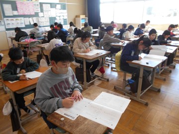 1月14日(水)、全学年で「学力テスト」を実施しました。今回のテストでは、1年生から6年生までの全児童が「国語」と「算数」の2教科に取り組みました。