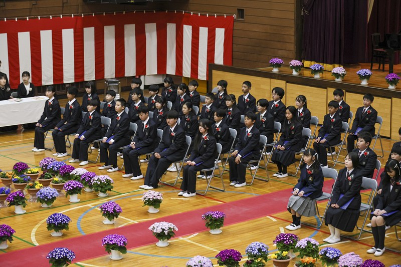 そして卒業生の退場。緊張から解放され笑顔で、しかし堂々と歩く姿には、小学校生活を修了した自信と、明日への確かな希望がみなぎっていました。