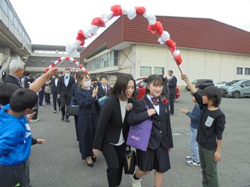 式を終え、保護者や先生方、在校生に見守られながら、笑顔で学校を後にした卒業生。壬生東小学校で培った「自律」の精神と、困難に負けない強さがあれば、中学校という新しいステージでも必ず輝けると確信しています。