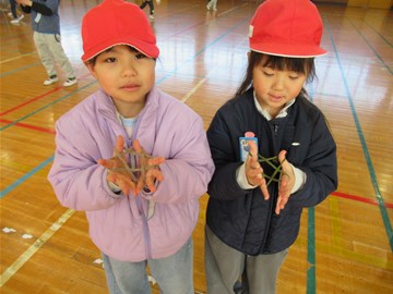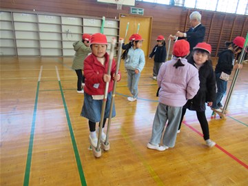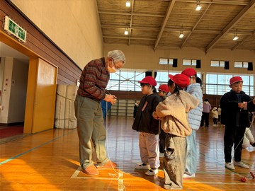 1月29日(木)に、1年生が生活科の学習「むかしからつたわるあそびをたのしもう」の一環として、地域のボランティアの方々をお招きし、「昔遊び体験」を行いました 。今回の学習は、伝承遊びを通して地域の方々と触れ合い、親しみや感謝の気持ちをもつことをねらいとしています 。体育館には、子供たちの元気な声とボランティアの皆様の優しい笑顔が溢れました 。