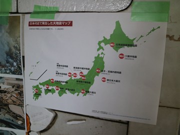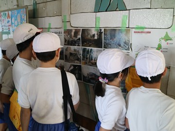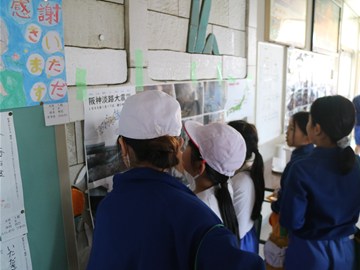 昇降口に阪神大震災の写真や最近起きた大きな地震の地図を掲示しておきました。4年生たちから「地震ってこんなにすごいんだ」との声が聞こえてきました。