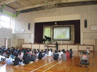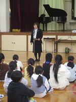 毎朝10分間読書(金曜日のみ、5,6年生はタブレットで英単語などを学習)をしています。2年生は、係の子が前に出てみんなに読み聞かせをしていました。