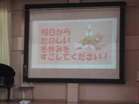 明後日はクリスマスイブです。4年生は、先週金曜日の外国語活動の時間に、クリスマスカードを作りました。カードを開くと、立体的なクリスマスツリーが飛び出てくる仕掛けになっています。思い思いに紙のツリーに色を塗ったり、カードに「I want  (ほしい物のイラスト)  please!」と書いたりして仕上げました。クリスマスソングのメドレーを聞きながら楽しそうに活動していました。