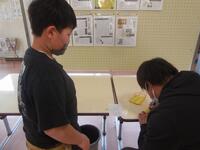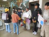 ごみを減らすために牛乳パックを小さくたたむことを呼び掛けるポスター作り、呼び掛け練習