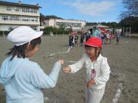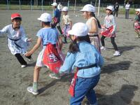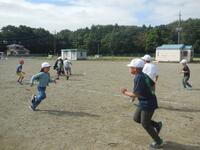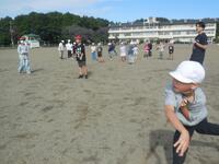 運動会では、プログラム最後の特別種目「力をあわせて引っぱれ!」(わんぱく隊対抗つなひき)で力いっぱい頑張った仲間と、今日は楽しく共遊です。班ごとに、中線ふみ、へびおに、ドッジボール、しっぽとりをして遊びました。爽やかな秋風にのってキンモクセイの甘い香りがしていました。