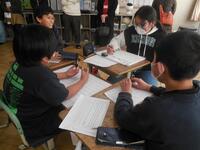 ごみを減らすために牛乳パックを小さくたたむことを呼び掛けるポスター作り、呼び掛け練習