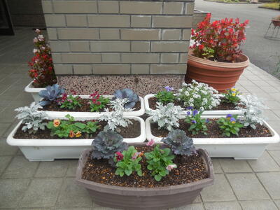 環境整備ボランティアさんが、秋の花をプランターに植えてくださいました。来賓玄関周りがかわいらしい花で彩られ、とてもきれいです。いつも学校の環境美化にお力添えをいただき、ありがとうございます。