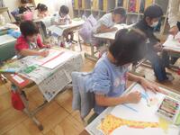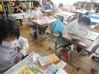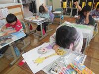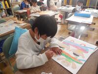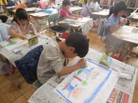 1年生は図工の時間に、楽しかったことやうれしかったことなど、みんなに知らせたいことを絵に描いています。社会見学でキリンを見たこと、遊園地の乗り物に乗ったこと、友達とブランコで遊んだことなど、思い思いに描いていました。1年生みんなの「にっこりニュース」の完成が楽しみです。