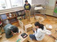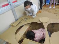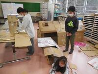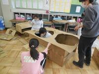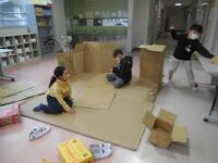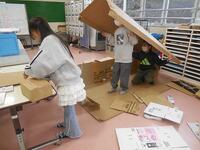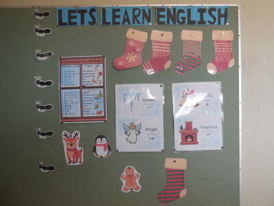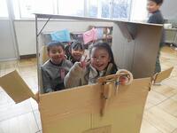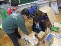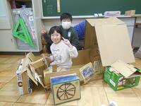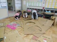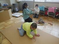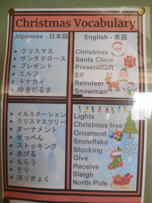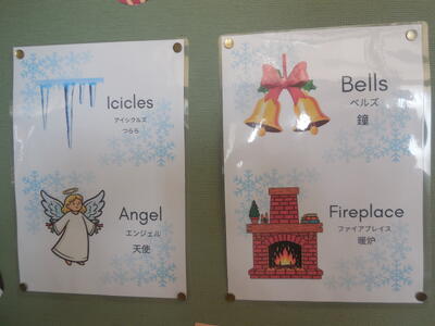 明後日はクリスマスイブです。4年生は、先週金曜日の外国語活動の時間に、クリスマスカードを作りました。カードを開くと、立体的なクリスマスツリーが飛び出てくる仕掛けになっています。思い思いに紙のツリーに色を塗ったり、カードに「I want  (ほしい物のイラスト)  please!」と書いたりして仕上げました。クリスマスソングのメドレーを聞きながら楽しそうに活動していました。