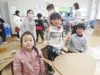 今日は風もなく、すっきりとした青空で快晴です。北っ子タイムは、わんぱく隊ごとの共遊でした。各隊の集合場所から、「イエーイ!」という歓声や「おねがいします」という元気な声が聞こえてきます。それぞれしっぽとり、バナナ鬼、王様陣地取り、けいどろをして楽しく遊びました。
