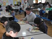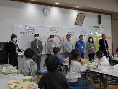 また、今回は、ランチルームで配膳や片付けの様子を見ていただき、児童と一緒に給食を試食していただきました。食事中は黙食ということで、会話ができないのが残念でしたが、近くの席の児童が牛乳パックの開け方を教えてくれたというほほえましいエピソードを教えてくれました。委員の皆様、いつも温かく北小を見守っていただき、ありがとうございます。