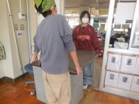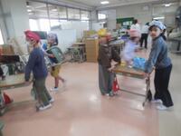 前半は、自分が使っていた机やいすをきれいにしてから、廊下に机や教卓、テレビなどを出しました。