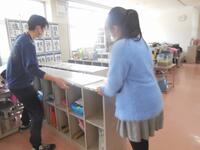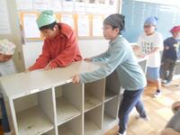今週から始まる卒業式の練習に向け、金曜日の5時間目に4,5年生が演台を設置したり、長テーブルや椅子を並べたりして会場作りを行いました。また、放課後には、職員で紅白幕を張りました。