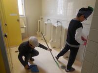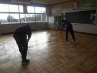 後半は、各清掃場所の清掃です。放課後、職員がワックスがけをするので、各教室の床を水拭きしました。感謝の気持ちをもって、一年間お世話になった教室をピッカピカにしました。明朝は、みんなで協力して教室に荷物を入れます。教室がさっぱりしました。