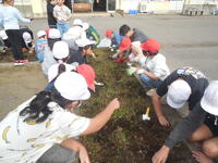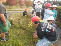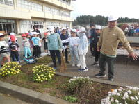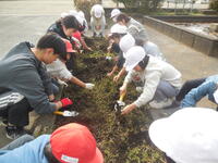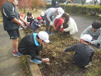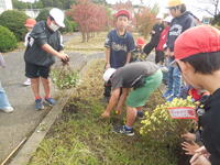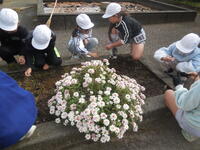 「北っ子タイム」に夏の花の花摘みと草取りをしました。今年の夏は暑かったので、9月頃までは花も元気がありませんでした。ところが涼しくなってくると、それまでの分を取り戻すかのように生き生きとして株も大きくなりました。特にきれいに咲いている2株は、花壇にもう少し残すことにし、周りの草取りをしました。この後は、肥料を入れて耕して、次の花苗を植える準備をします。