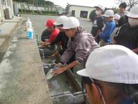 5年生は今、家庭科でエプロンを製作しています。今日は、エプロンづくりと並行して、春から育ててきた「バケツ稲」からとれたお米を炊いてみました。お米の粒に玄米が少し残っていたので、ちょっと薄茶色に色がついていて、ぷちっとした歯ごたえもあります。育ててきた稲からとれた貴重なご飯をみんなで味わいました。