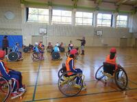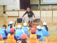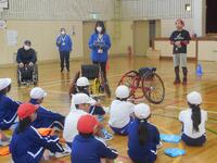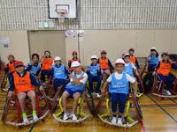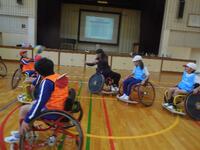 壬生町社会福祉協議会様、講師の佐々木様、高橋様の御協力により、4年生が車いすバスケットボールを体験することができました。自分の思うように車いすを操作するのは難しく、ボールを運んだり、パスを回したりするのに子供たちは苦労していました。しかし、だんだん慣れてきてゴールも決まると、歓声が上がり車いすバスケットボールを時間いっぱい体験しました。後半は、佐々木様より講話を聞き、福祉について学びました。