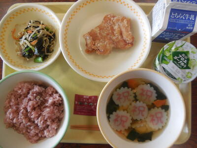 <今日の給食は、卒業お祝いメニューです!>