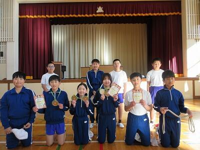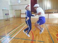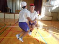 その後は、二重跳びと二人跳びです。二重跳びでなわを回す音は、さすがに迫力がありました。また、二人跳びでは、向かい合ったり、後ろを向いたり、横を向いたりしながら、和気あいあいと楽しそうに跳んでいました。最後には和やかな「表彰式」もあり、卒業前の楽しい思い出がまた一つ増えました。