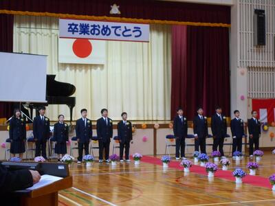 11名全員参加で卒業式を迎えることができ、大変うれしく思いました。卒業式においても、証書授与、別れの言葉、式歌、どれも真剣で一生懸命な姿を見せてくれました。