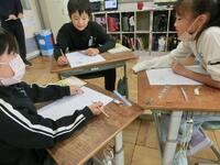 4年生は「面積」の学習で、長方形と正方形の面積を求める学習をしてきました。昨日は、まとめとして複合図形の面積を求めることにチャレンジしました。まずは一人で考えます。その後グループで友達と一緒に考えたり、お互いの考え方を説明し合ったりしました。求め方は何通りかありますが、図形を分けたり付け足したりして長方形を見出し、それぞれの方法で面積を求めていました。友達と学び合いながら一生懸命考えることができました。