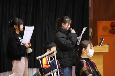 代表児童からの感謝の言葉とともに全校児童からの「ありがとうございます」の声が響くと、