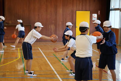 12月16日(火)に、BREXバスケットボールスクール事務局から、コーチ2名をお招きして、5・6年生対象のバスケットボール教室を実施しました。