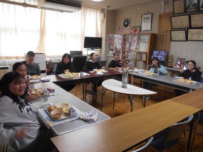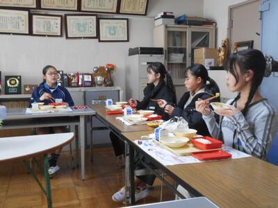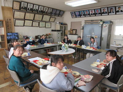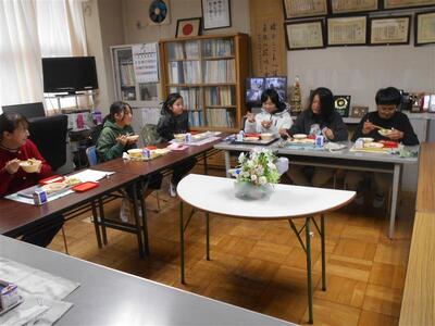 卒業を間近に控えた6年生が、グループごとに校長室を訪問し、会食を行いました。