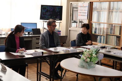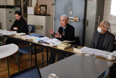 2月4日(水)第4回学校運営協議会を行いました。会長の「親睦も深まってきましたので、家族のように良い意見交換になることを期待しています。」の一言から始まりました。まずは「壬生開拓の会」の皆様による出前授業の様子をご覧いただきました。